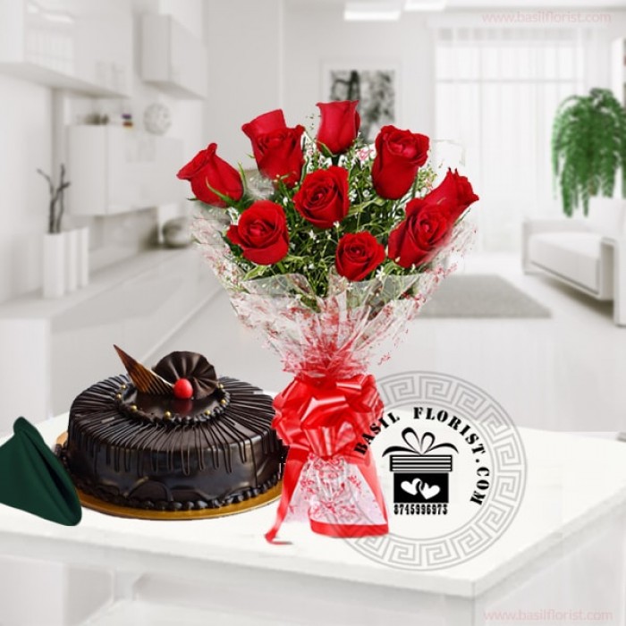This lovely combo is for a person who is close to your heart. 1/2 kg chocolate truffle cake & a bunch of 10 red roses.