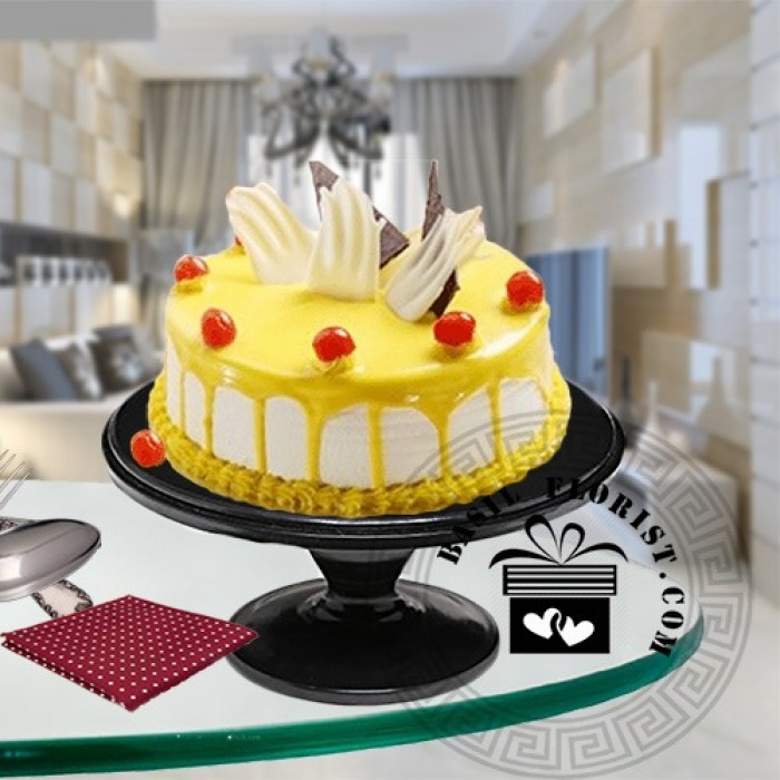 A soft creamy cake layered with pineapple crush & pineapple chunks. At Basil Florist, each cake is made of high quality ingredients for our valuable clients. We try to serve our client with the best of the flavors that are fresh and well tasted. Since every gourmet specialist has his/her own particular manner of preparing and designing a cake, there may be a slight variety in the item as far as design and shape is concerned. We take online orders for you and arrange the deliveries as early as possible. Though the delivery time is a gauge and relies upon the availability of the item and the destination to which you need the cake to be delivered. Please note that since cakes are perishable in nature, we take efforts to deliver your requested order just once. We will not be able to entertain the delivery of cakes to a changed location. You can book the time slot for the delivery online through www.basilflorist.com and check for the availability. We deliver these handcrafted beautiful and delicious cakes by hand. This item won't be delivered alongside courier items. Occasionally, we may add or replace the flavors/designs due to temporary and/or regional unavailability issues.